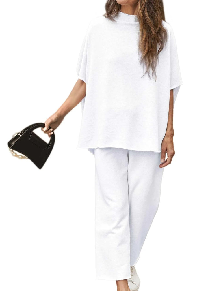 - Fashionable Style: hand-cut raw hem, rolled funnel neck, crew neck, solid color, loose fit, pullover tops, elastic waist, wide leg pants.