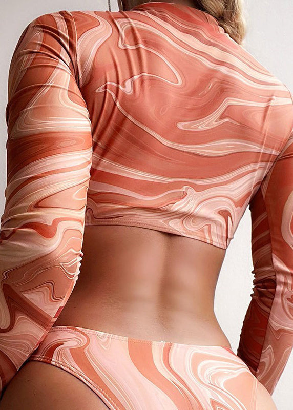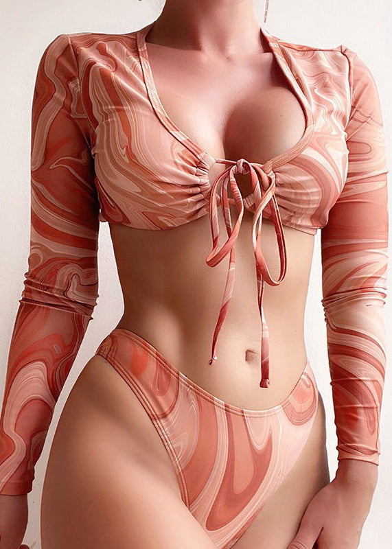 New Orange Long Sleeved Lace Up High Waist Bikini Swimwear