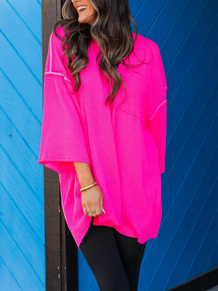 Embrace the oversized trend and pair this top with leggings and sneakers for a cool-girl look! Go forward in style with this must-have top!
