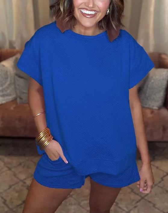 New Women's Solid Textured Drawstring Shorts Set (Buy 2 Free Shipping)