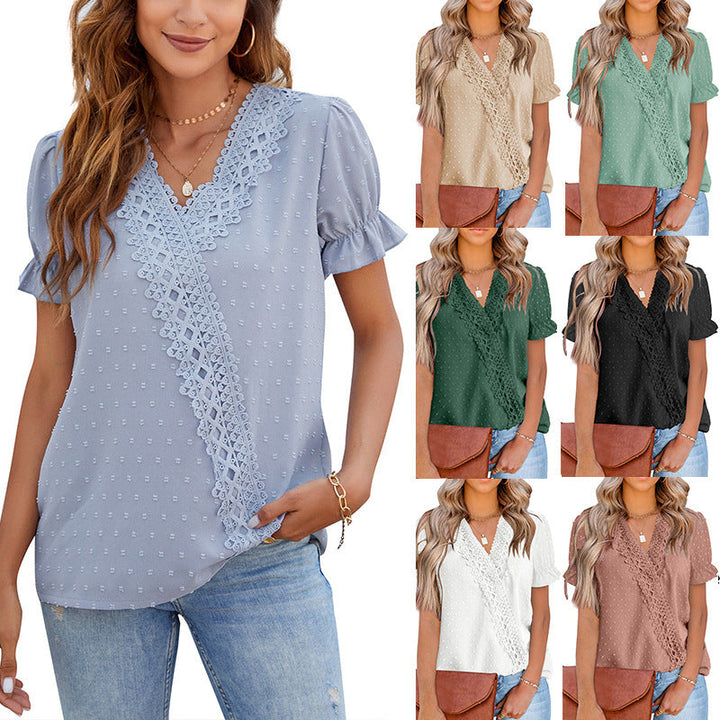 Chiffon Ball Lace V-Neck Short Sleeve Shirt