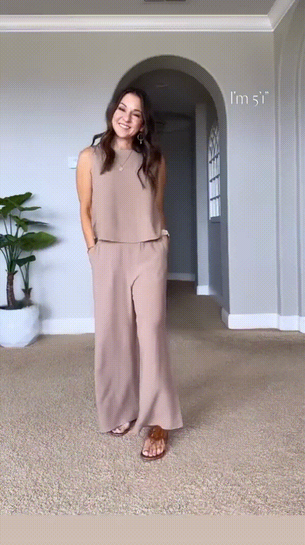 - Features - 2 piece outfits, sleeveless round neck crop top, wide leg cropped pants, button back, high waist, wide waistband.
