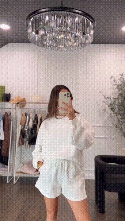 Effortless beauty, how dreamy is the new sweatshirt set. You will love the solid color pullover design, super cute and stylish. Matching high waist shorts has elastic waistband and drawstring to match all figures adjustment.